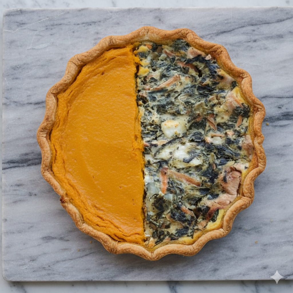 Masa semi-integral, mitad espinaca, zanahoria rallada, queso portsalut – mitad calabaza