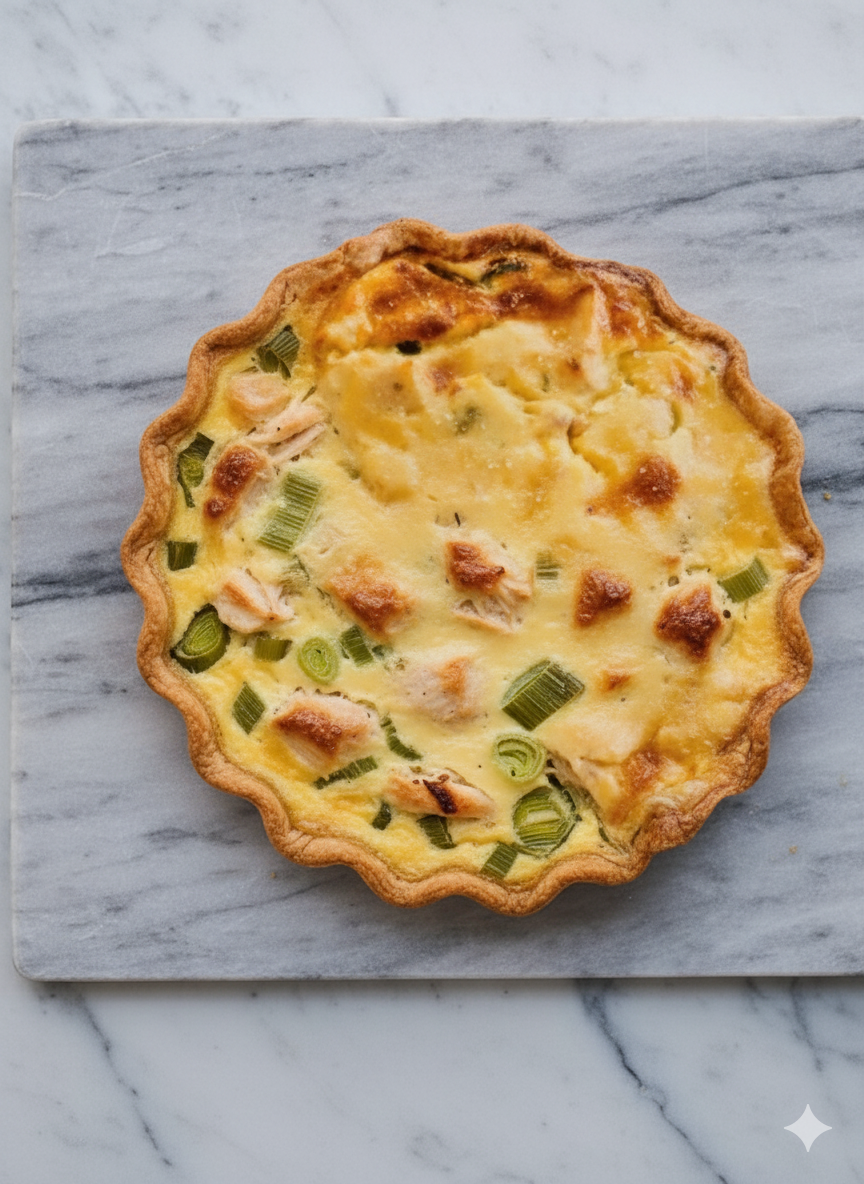 Masa semi-integral, Pechuga de pollo, queso portsalut y salsa de puerro